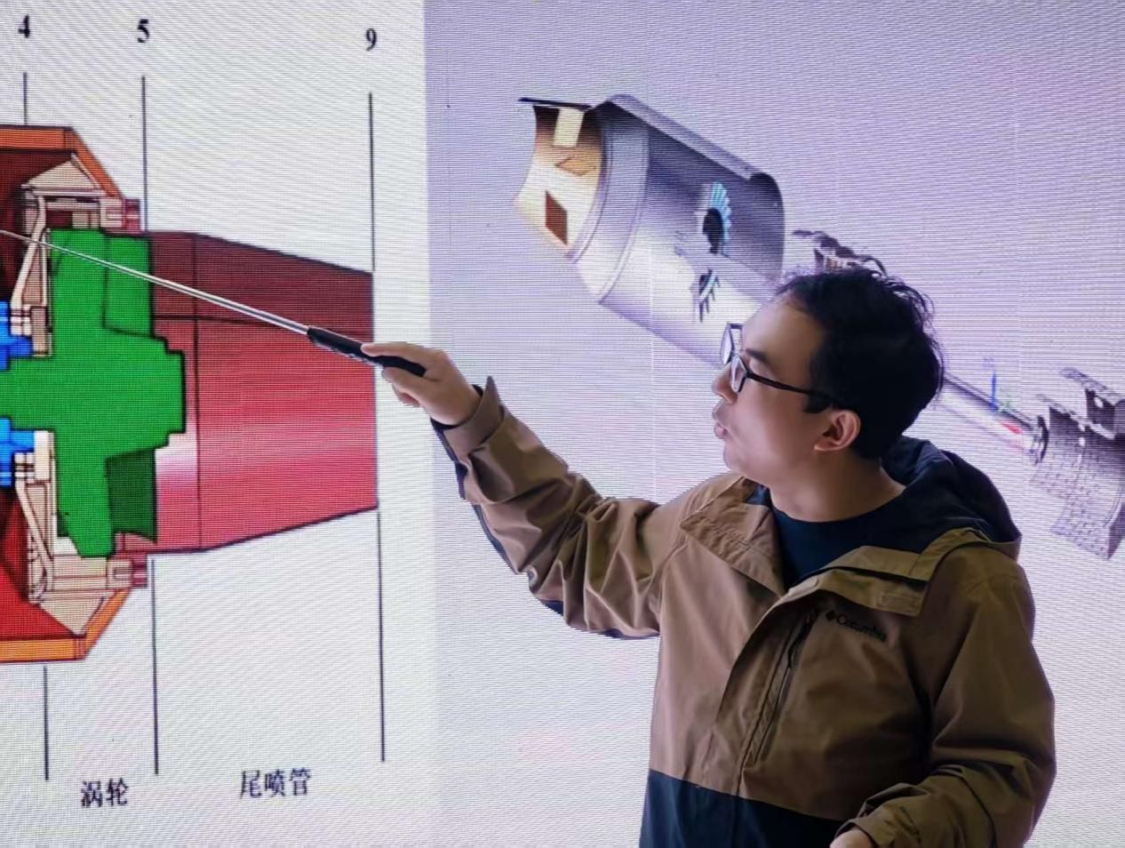 宋思瑜:贾老师以深入浅出的讲解和形象比喻,避开晦涩公式,将航空发动机这一飞行器“心脏”的工作原理、核心部件协同逻辑拆解开来,让原本抽象的专业知识变得清晰易懂,让我对压气机增压、燃烧室能量转化等关键机制有了透彻认知。最震撼的莫过于推力45公斤涡轮发动机的整机试验。引擎启动时,轰鸣震彻全场,蓝色火焰从尾喷口稳定喷薄而出,转速表跳动的数字直观展现着澎湃动力。这一刻,书本上的理论知识瞬间转化为可感可知的磅礴力量,让我真切领略到“动力之美”。
