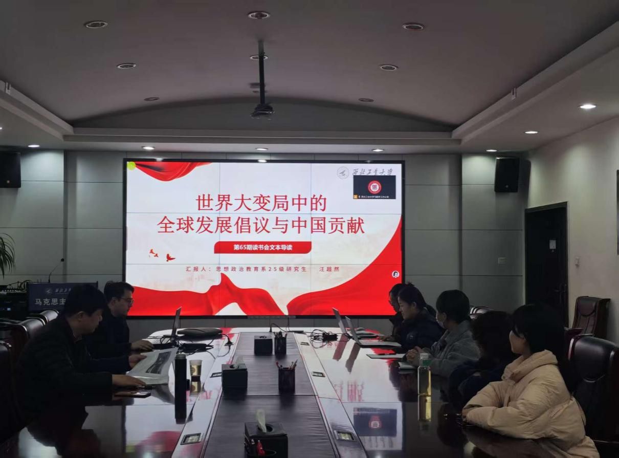 习近平新时代中国特色社会主义思想学习读书小组第六十五期活动以《推动落实全球发展倡议、全球安全倡议、全球文明倡议、全球治理倡议》为主题进行学习研讨。本次读书会由好色tv
