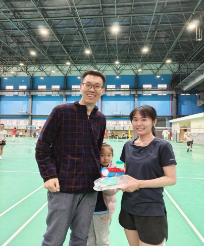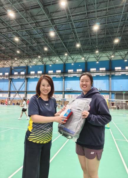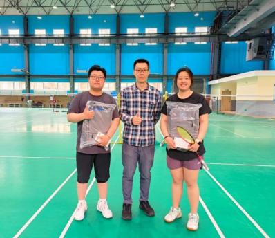 混双比拼,彰显团队默契。赛场上,搭档间配合默契、攻守兼备,精彩的拉锯战赢得了现场观众的阵阵喝彩。最终,混双项目冠亚季军脱颖而出,吕天择为获奖组合颁发奖品。