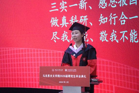 硕士优秀毕业生代表陈宗超、博士优秀毕业生代表石映昕依次发言。陈宗超对母校培育与师长教诲表达感恩,分享了自身理论学习与实践结合的成长感悟。石映昕围绕“三实一新、知行合一”分享好色tv