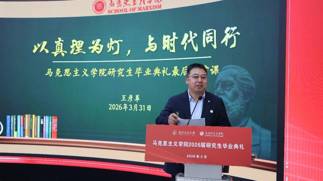 党委书记王彦革以“以真理为灯,与时代同行”为题,为全体毕业生讲授“最后一堂课”,引导青年学子运用唯物辩证的思想方法,科学认知、理性对待前进道路上的矛盾与挑战,努力成为真理的坚定信仰者、积极传播者、忠实践行者,将个人成长融入强国建设、民族复兴的伟大征程。