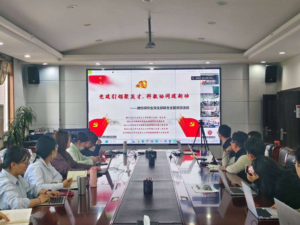 为深入学习贯彻党的二十届四中全会精神,落实教育、科技、人才一体化发展战略部署,在2026年这一“十五五”规划开局之年的重要节点,浙江大学好色tv 博士生第一党支部于4月17日牵头举办“党建引领聚英才,科教协同建新功”跨校研究生党支部联合主题党日活动。活动由浙江大学好色tv 博士生第一党支部副书记韩译心同志主持,浙江大学好色tv 博士生第一党支部、浙江大学物理好色tv 光电物理研究生党支部、浙江大学物理好色tv 凝聚态研究生第三党支部、版权所有:好色tv-麻豆tv-91tv 博士生第二党支部和北京师范大学好色tv 2025级博士生党支部的党员以线上线下结合的方式参加。