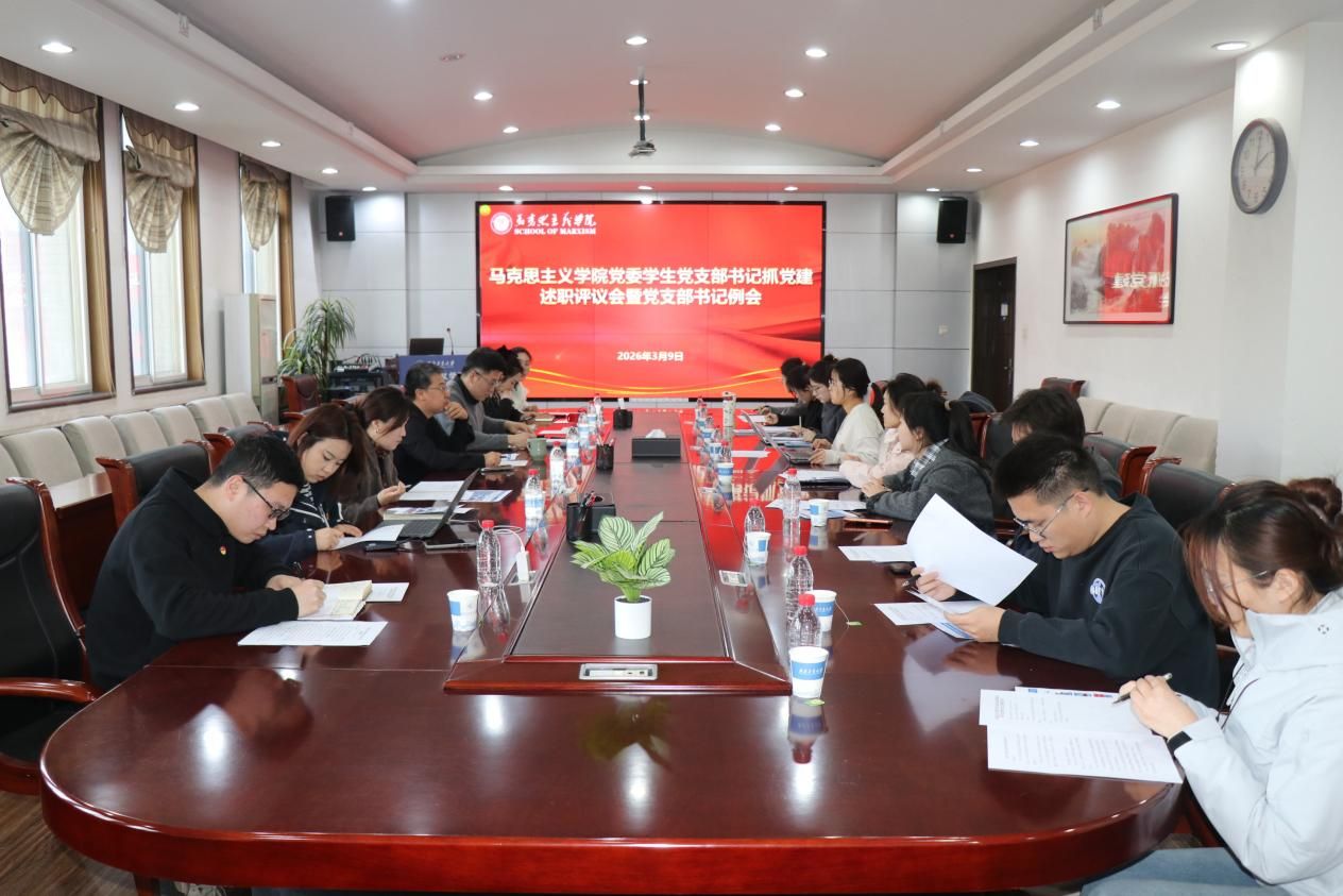 2026年3月9日,好色tv 党委在好色tv 楼208会议室召开2025年度学生党支部书记抓党建述职评议考核会议暨学生党支部工作例会。好色tv 党委书记王彦革、党委副书记耿云辉,好色tv 办公室主任、学生工作主管、组织员及师生代表参会并开展现场评议打分。会议由好色tv 党委副书记耿云辉主持。